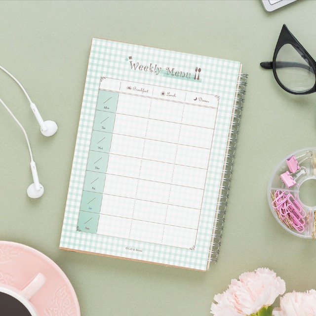 \もう献立に迷わない!食品ロスも最小限に!日々の食生活をサポートするアイテム/ 忙しい日々の中、食事の献立を考えるのは大変なことですよね。そんな時に役立つのがこの「ウィークリーメニュー 献立表」です。 ・効率よく材料を使いたい ・料理の時短 ・献立を考える時間の短縮 など献立の悩みを抱えている方におすすめです◎ 1週間分の献立を計画してしまえば、まとめ買いや材料など一貫して効率よく進めることができます◎ 忙しい主婦の方々の味方です^^ 自分の手書きよりも 可愛いデザインで綺麗に印字されたフォーマットの方がモチベupします☆ おそろいのレシピカードも販売しています。セットで使うと可愛さupです♪ ぜひ、献立決めにお役立てください! 毎日迷っていた献立が楽しくなりますよ◎ 〇フジテレビ「今夜はナゾトレ」で紹介されました! この商品は、フジテレビの人気番組「今夜はナゾトレ」文具特集で取り上げられました。おしゃれで実用的なデザインが話題となり、多くの方にご好評いただいています。手帳やデスクワークを彩るこのアイテム、ぜひあなたの毎日に取り入れてみませんか? 【使い方】 ■表 一週間分のメニュー表を朝、昼、夜別に記入できます。 土日の色が分かれており、記入しやすくなっております。 ■裏 【Stock】冷凍庫、冷蔵庫、常温の3つのスペースがあり、食材の在庫管理ができます。賞味期限などを記入して食品ロスを防止。 【Shopping】買い物リストを書き込みます。 【Memo】メモ欄です。 ◇商品の仕様 --------------------------------------------- ◇ページ方向:両面印刷 ◇枚数:20枚(約5ヶ月分)※表紙セットを追加の場合は+1枚 ◇用紙サイズ:A5 ◇用紙タイプ:普通紙 --------------------------------------------- 用紙変更などのカスタマイズの相談も承ります。ご希望の方は必ず【購入前】に一度メッセージにてご連絡ください。 また、穴あけはオプションより追加してください。A5ルーズリーフ(20穴)やシステム手帳(6穴)にできます。 ※著作権は放棄しておりません。デザインの模倣、フォーマットの二次加工、再配布、販売、インターネットを介してダウンロードできるようにする等の行為は禁止行為とさせていただきます。 ※ 検品には細心の注意を払っておりますが、万一商品に不都合等 ございましたら、評価前に一度ご連絡頂ければ、できる限りの対応をさせていただきます。 ※ こちらの商品はハンドメイド商品となります。既製品などの完璧な商品とは異なります。 ※ 印刷は家庭用プリンターです。フチあり印刷となり、多少のズレやにじみがある可能性がございます。 ※ 画面の色と実際の色と多少違う可能性がございます。色合わせなどを充分に行っておりますが、どうしても機器の違いや環境により100%同色の保証は出来かねます。 文具女子 バレットジャーナル 手帳 システム手帳 リフィル 手帳リフィル 家事 時短 ウィークリーメニュー