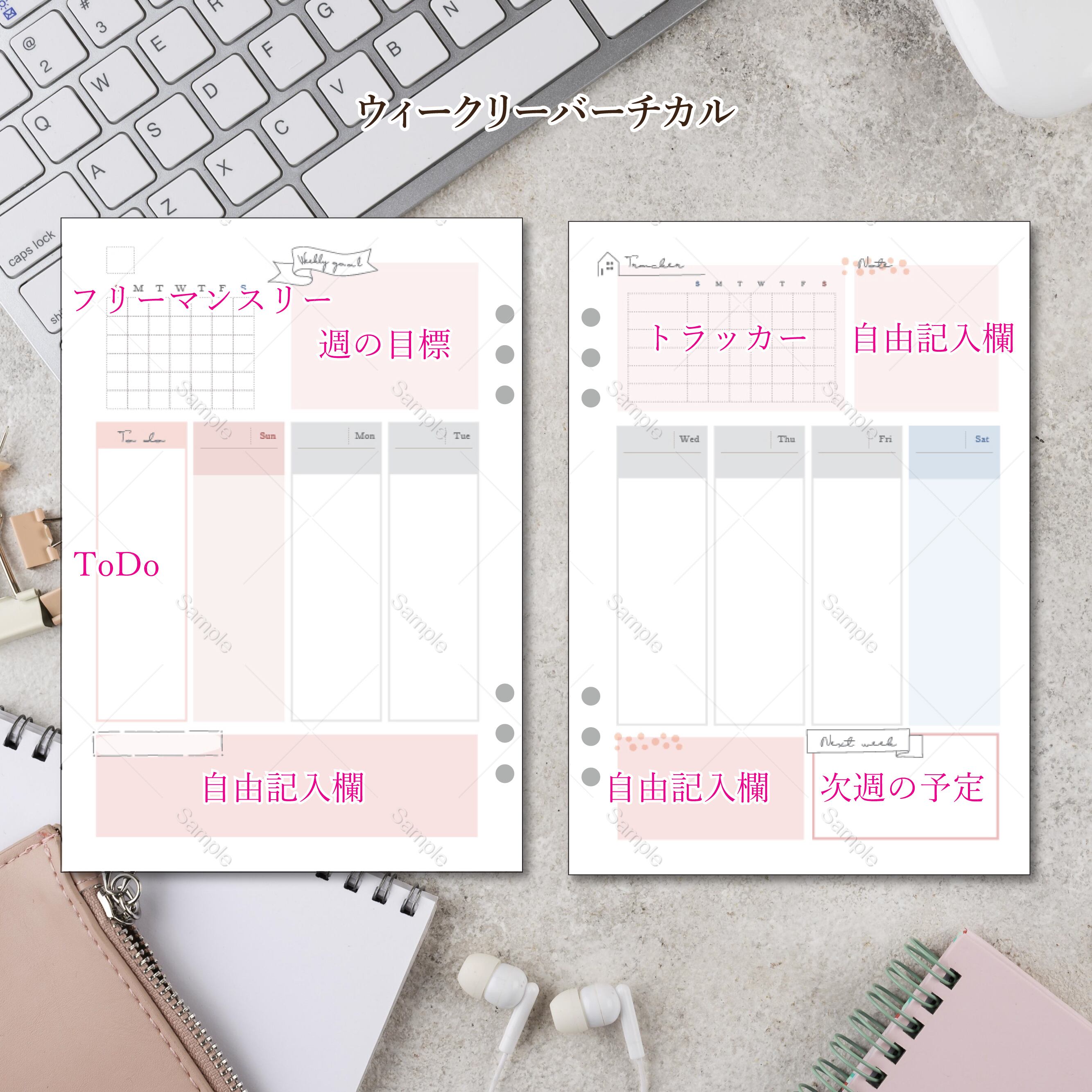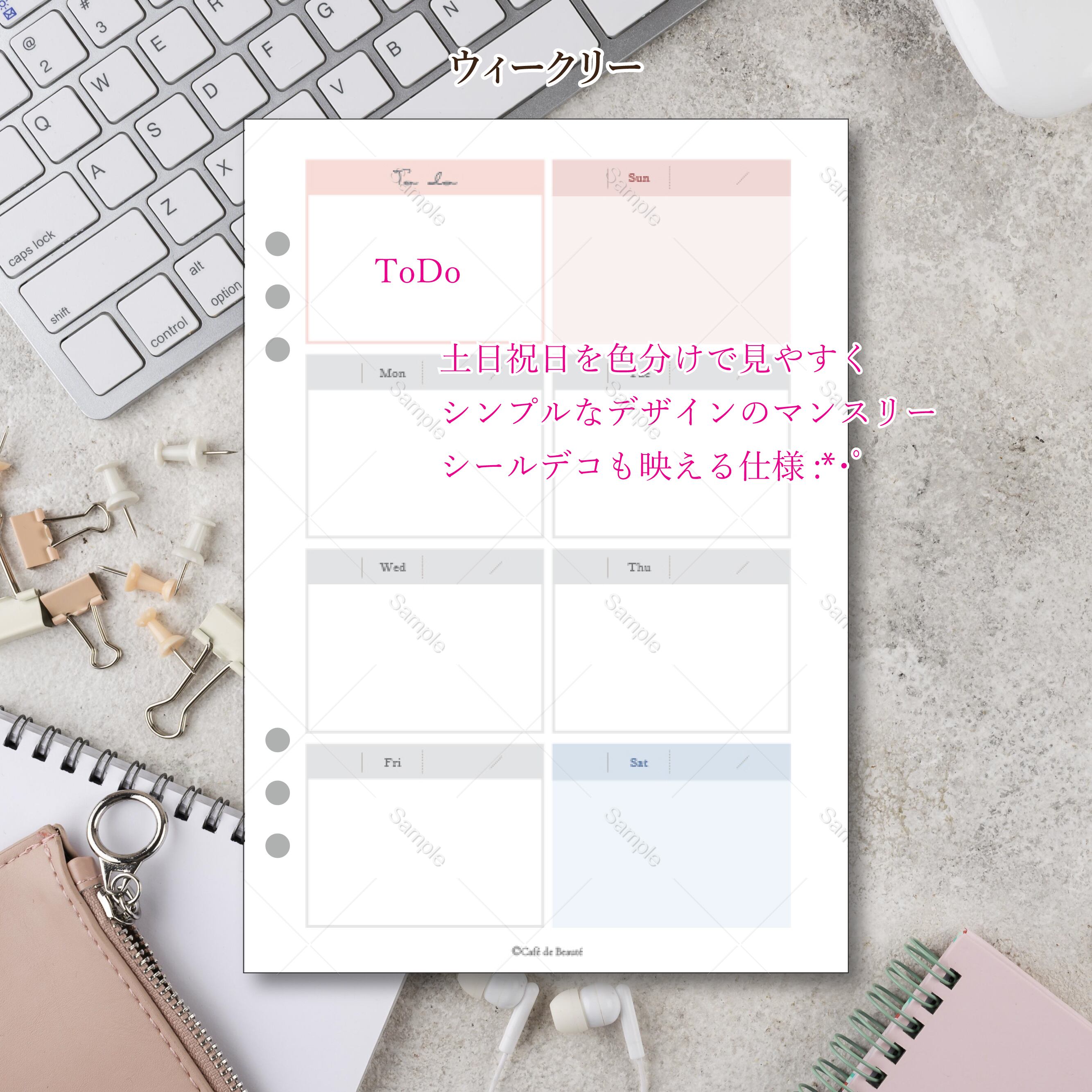 シンプルなデザインなので、自由度が高く、手帳デコがお好きな方にも楽しめるように作成致しました。