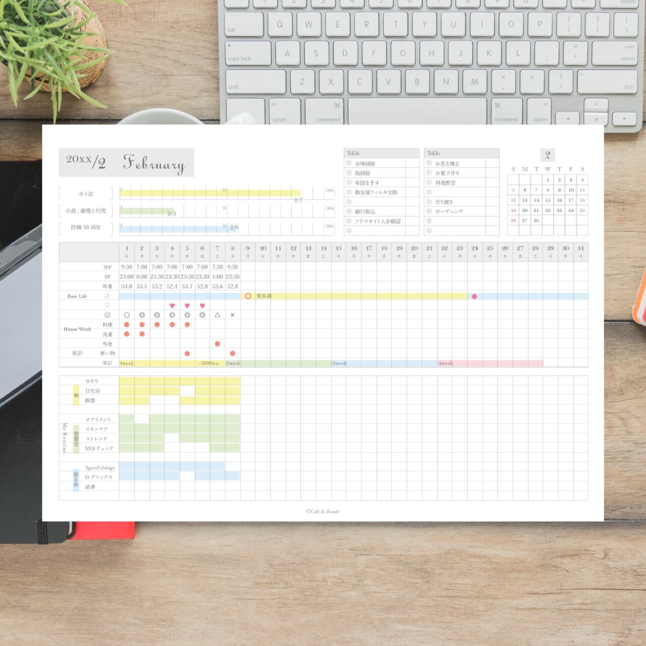 進捗パーセンテージは、その月で達成したい目標などをお書きください。